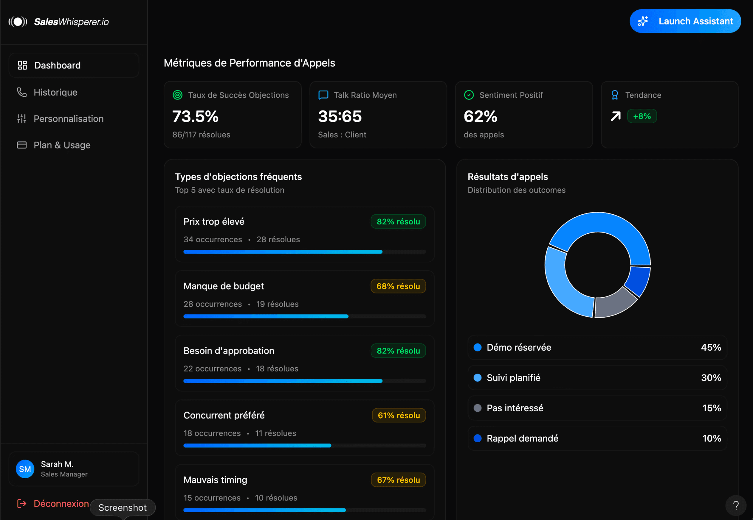 Recevez une clarté immédiate sur ce qui fonctionne dans vos appels et ajustez votre discours en temps réel.